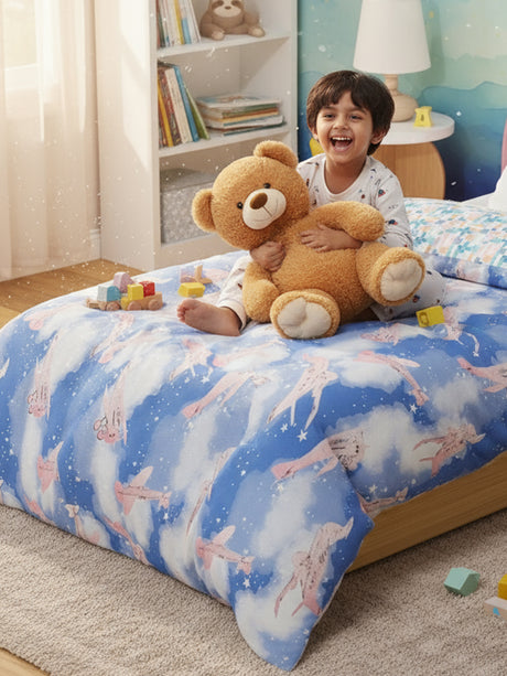 100% Cotton Blue Reversible Double Comforter For Kids, 200 TC Unicorn Print , Rock N Room Collection