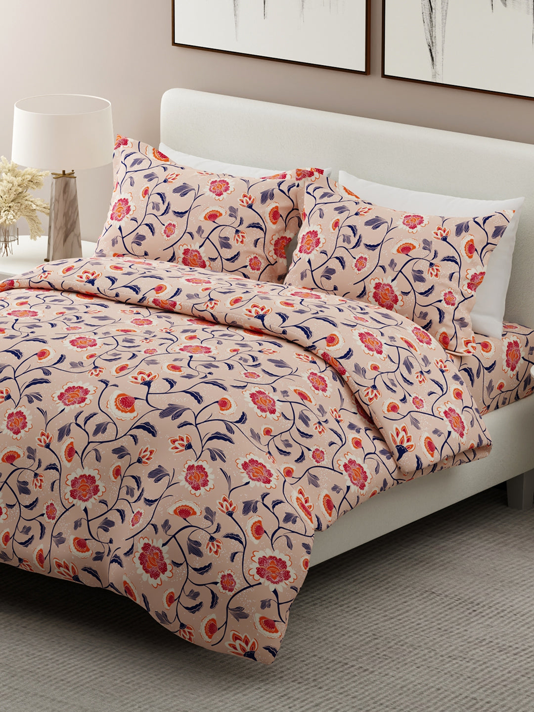 Siesta 100% Cotton 200 TC Pink Floral Print King Bedsheet with 2 Pillow Covers