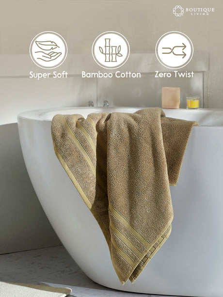 Rs. 1,124.00MRP inclusive of all taxesUnit price /UnavailableZen Living Cotton Bamboo 550 GSM Bath Towel - Safari (Beige) (Pack of 1)