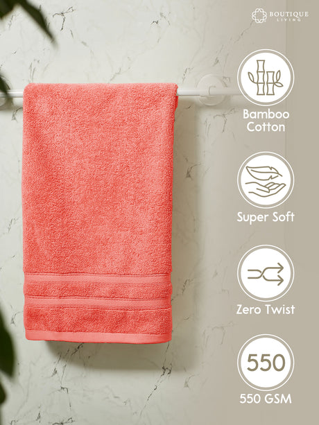 Zen Living Cotton Bamboo 550 GSM Bath Towel - Dark Dahlia (Peach) (Pack of 1)