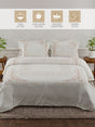 Indulge in the exquisite beauty of the Boutique Living Platinum Pulse Meenakari Design King Bedsheet. This luxurious 100% cotton bedsheet, with a lavish 800 thread count, transforms your bedroom into a sanctuary of traditional Indian artistry.