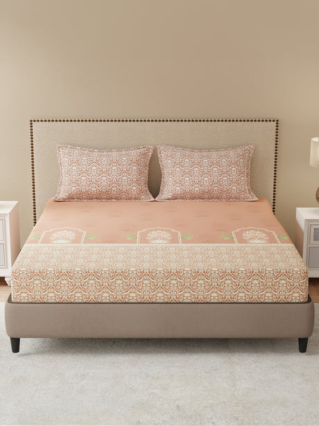 Rs. 3,999.00MRP inclusive of all taxesUnit price /UnavailableKing Bedsheet Set, 100% Cotton 200 TC, Brown Floral, Valatia Tarang