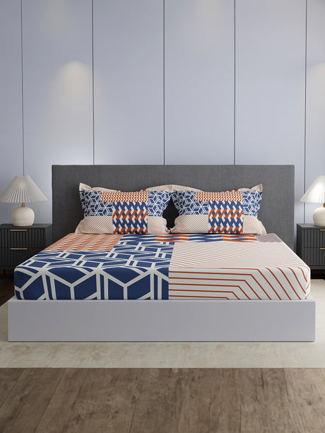 Rs. 3,999.00MRP inclusive of all taxesUnit price /Unavailable100% Cotton King Bedsheet Set, 300 TC Multicolor Geometric, Gardenia Augusta