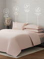 100% Cotton 300 TC, King Size Dyed Bedsheet with 1 Duvet Cover and 4 Pillow Covers, Emblem Collection - Pearl Blush