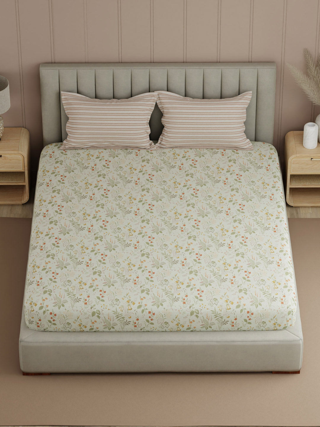 100% Cotton 200 TC, Printed Double Bedsheet Set, Valatia