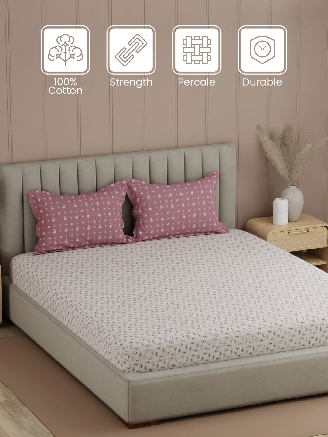 100% Cotton 200 TC, Printed Double Bedsheet Set, Valatia - Pink - Floral is backordered and will ship as soon as it is back in stock.