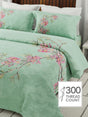 Gardenia Augusta 100% Cotton 300 TC Green Floral Bedsheet with 2 Pillow Covers - Super King (120 L x 120 W inches)
