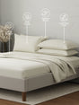 100% Cotton 300 TC, King Size Dyed Bedsheet with 4 Pillow Covers, Emblem Collection - Antique White