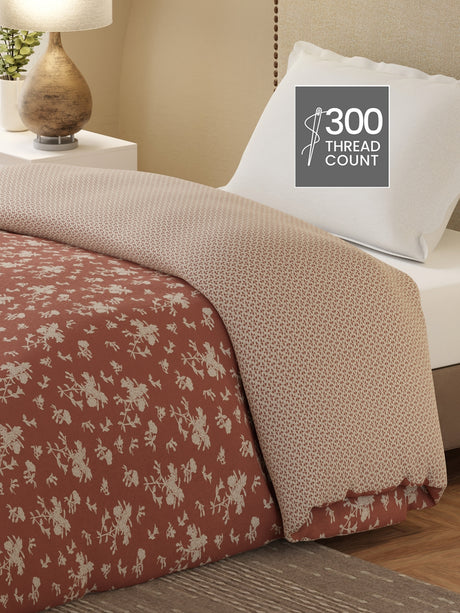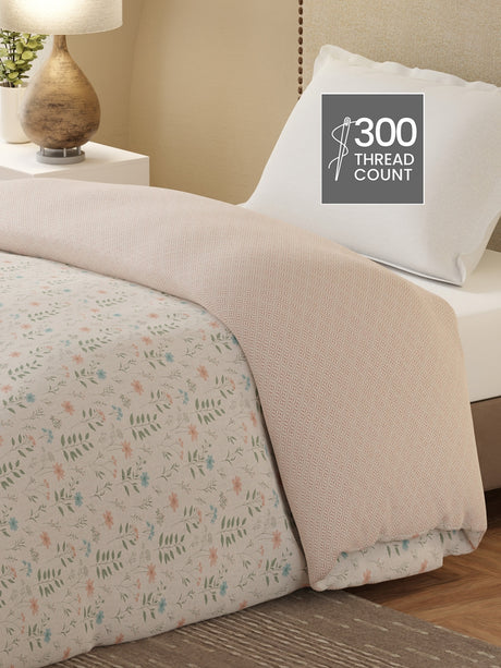 Royal Essence 100% Cotton 400 TC Peach Floral King Bedsheet with 4 Pillow Covers & 2 Cushion Covers