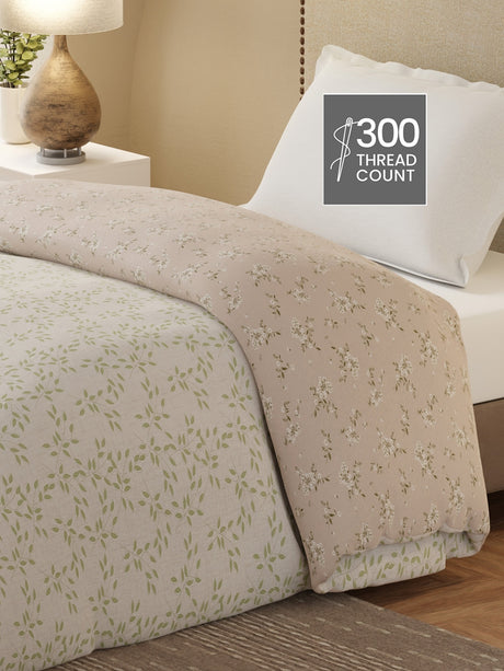 100% Cotton 200 TC, King Size Beige Bedsheet with 2 Pillow Covers, Valatia Collection (Floral Print)
