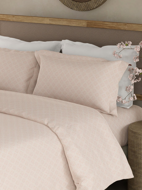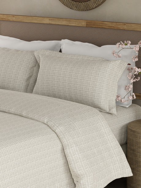 Cottage Garden 100% Cotton 300 TC King Bedsheet with 2 Pillow Covers - White Geometrical Print