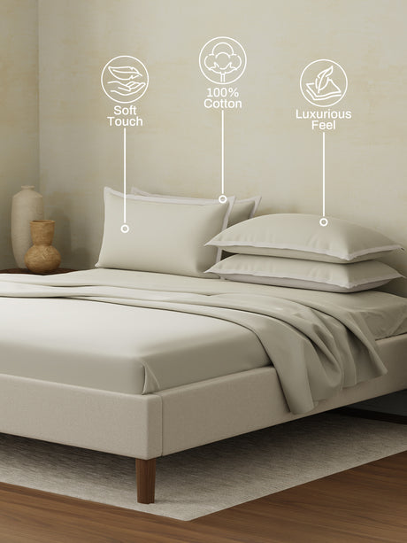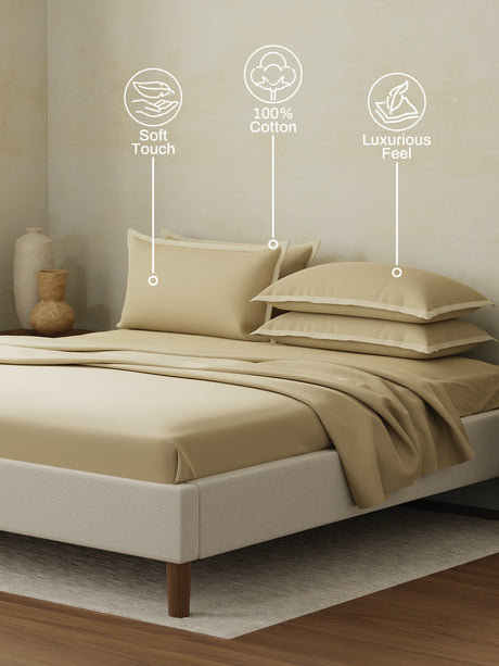 Rs. 4,799.00MRP inclusive of all taxesUnit price /UnavailableCotton Charm 400 TC 100% Cotton King Size Dyed Bedsheet with 4 Pillow Covers - Taos Taupe