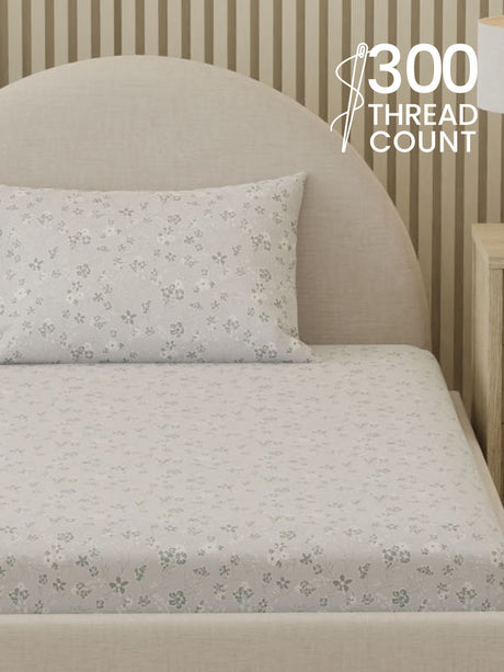 100% Cotton, 300 TC Printed Single Bedsheet Set, Cottage Garden