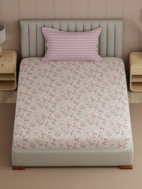 100% Cotton, 300 TC Printed Single Bedsheet Set, Cottage Garden