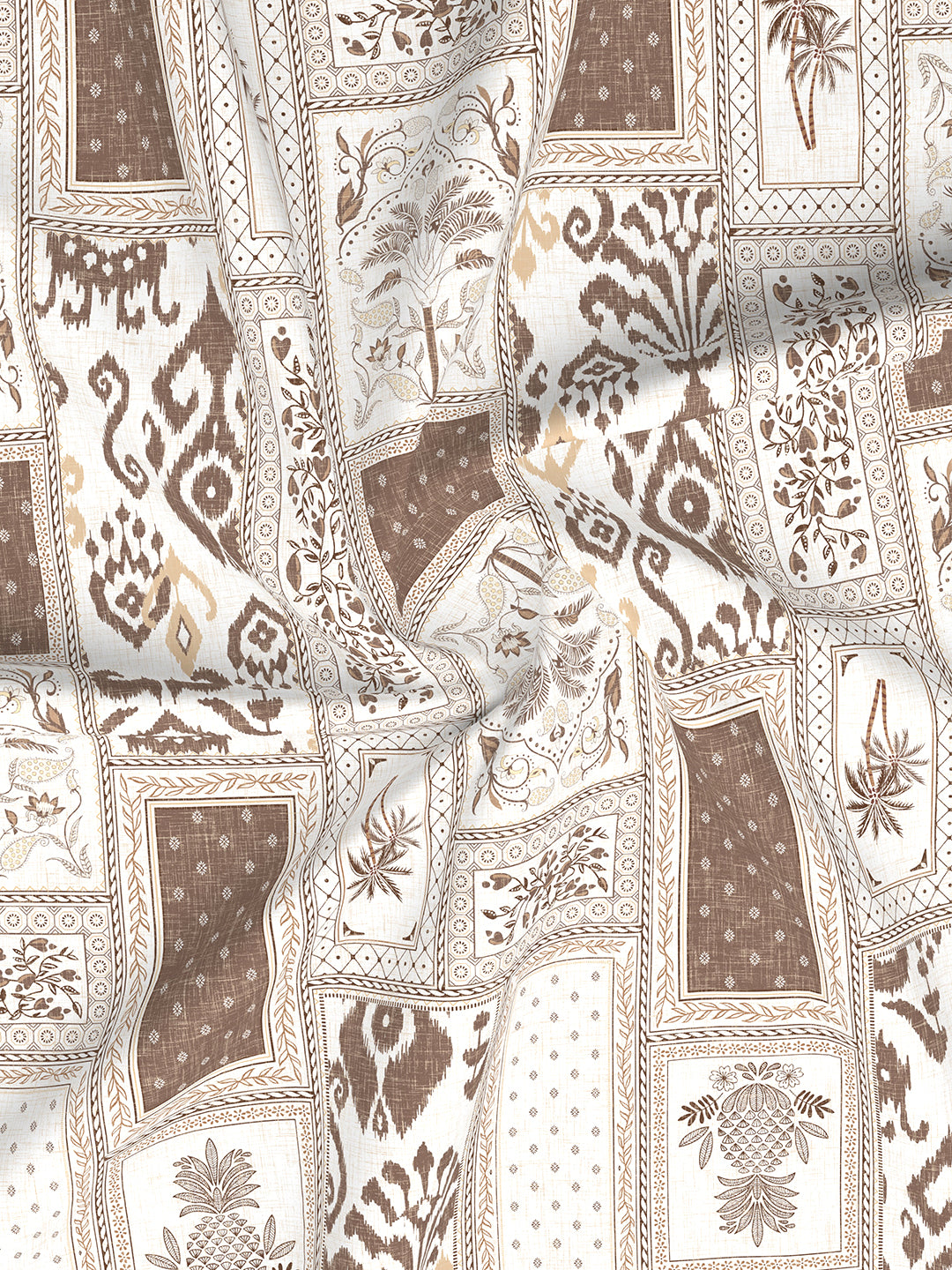 100% Cotton 300 TC Brown & White Digitally Printed King Bedsheet with 2 Pillow Covers - Gardenia Augusta