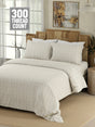 Gardenia Augusta 100% Cotton 300 TC White & Beige Digitally Printed Super King Bedsheet with 2 Pillow Covers