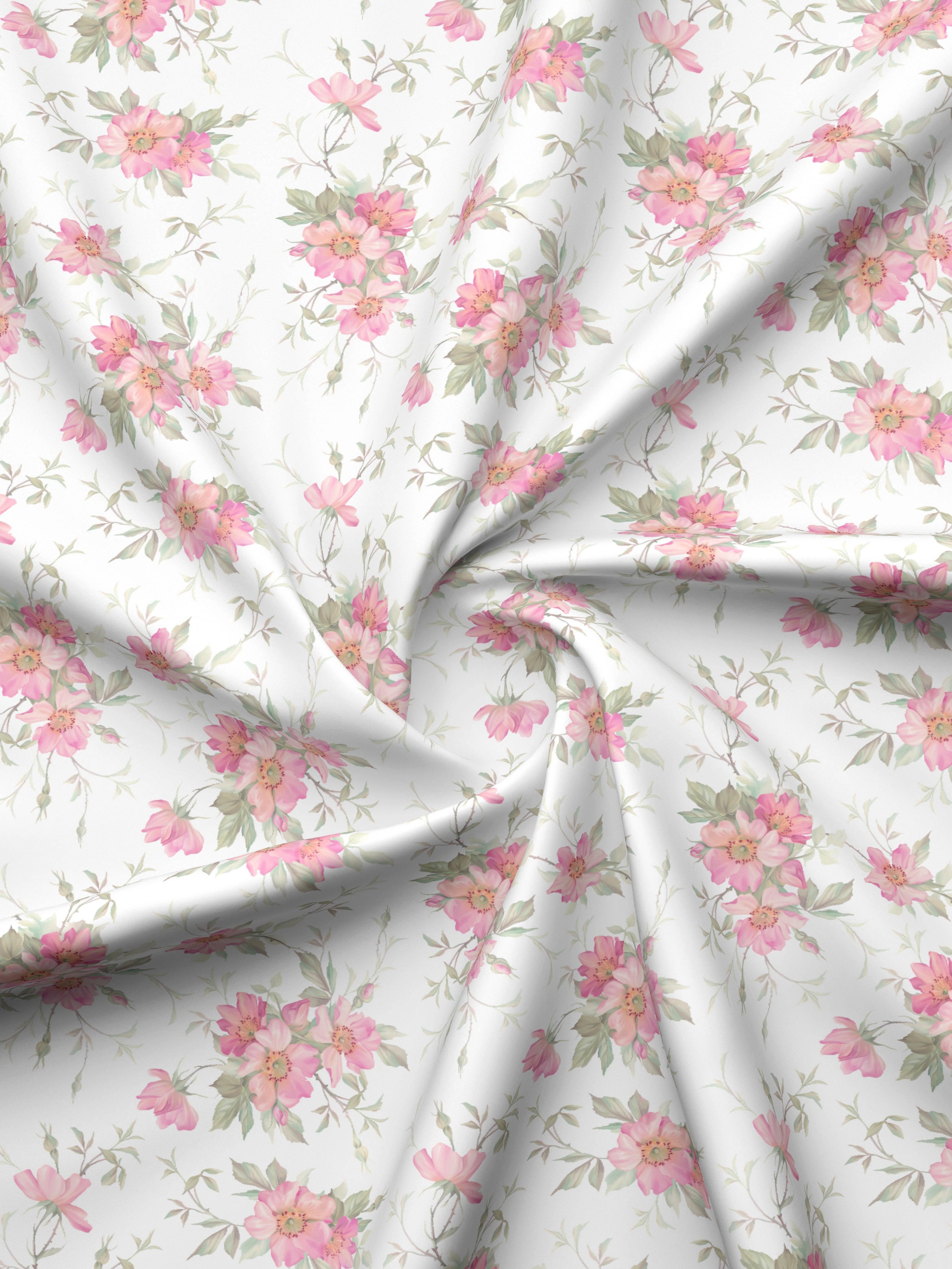 100% Cotton 300 TC White & Pink Digital Floral Print King Bedsheet with 2 Pillow Covers - Gardenia Augusta