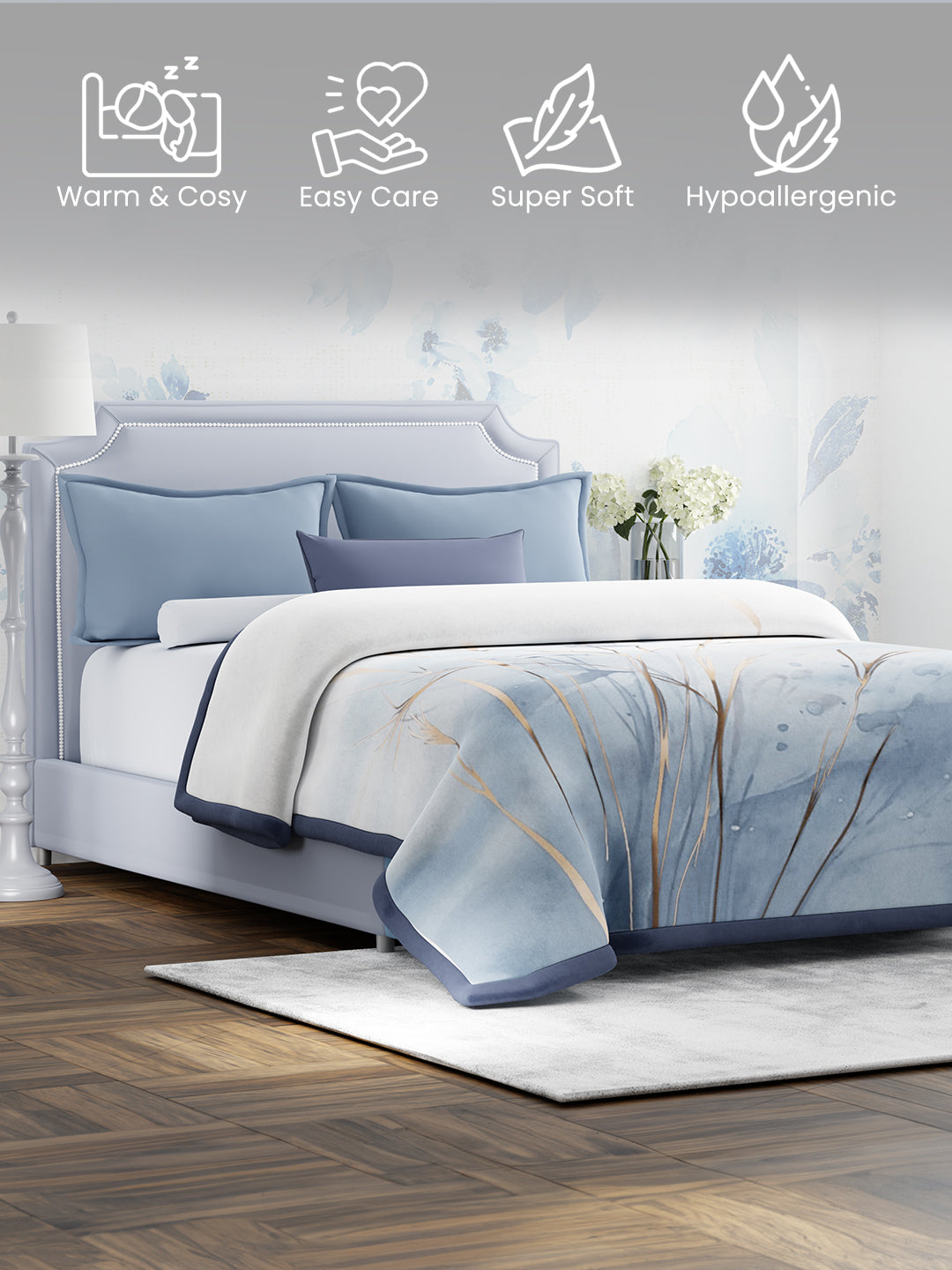 Perfect for Winter Season, Blue Printed 100% Polyester Double Size Blanket (Platinum Pulse Collection)