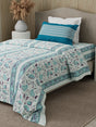 Valatia 100% Cotton 200 TC Karigari Printed Single Bedsheet with 1 Pillow Cover - Blue & White