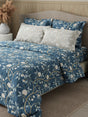 Royal Essence 100% Cotton 400 TC Blue & Grey Digital Floral Print King Bedsheet with 4 Pillow Covers