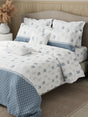 Royal Essence 100% Cotton 400 TC Blue & White Floral King Bedsheet with 4 Pillow Covers & 2 Cushion Covers