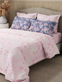 Royal Essence 100% Cotton 400 TC Pink & Purple Digital Floral Print King Bedsheet with 4 Pillow Covers