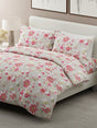 Siesta 100% Cotton 200 TC Pink & Grey Floral Print King Bedsheet with 2 Pillow Covers