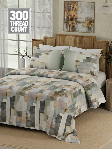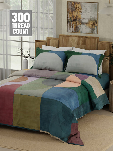 Gardenia Augusta 100% Cotton 300 TC Multicolor Digitally Printed King Bedsheet with 2 Pillow Covers