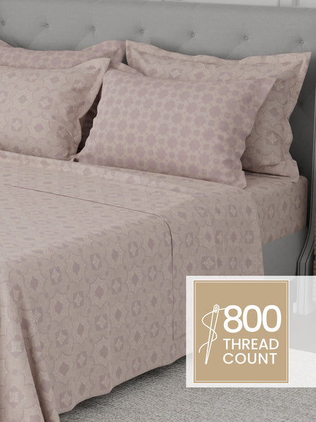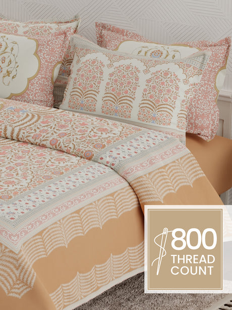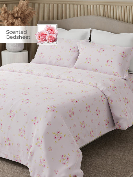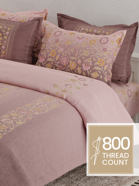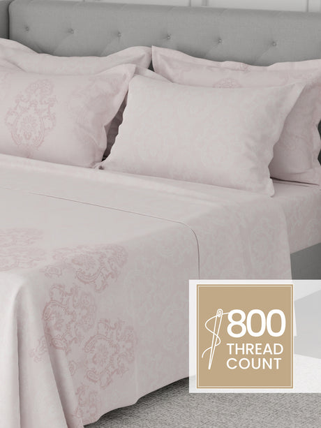 Platinum Pulse 100% Cotton 800 TC Light Pink Digitally Printed King Bedsheet with 4 Pillow Covers