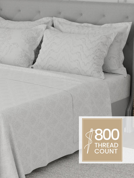 Gardenia Augusta 100% Cotton 300 TC Grey Digitally Printed King Bedsheet with 2 Pillow Covers