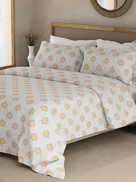 Rs. 2,530.00MRP inclusive of all taxesUnit price /UnavailableIndo Musk 100% Kasturi Cotton 200 TC White, Yellow & Pink Floral King Bedsheet with 2 Pillow Covers