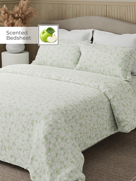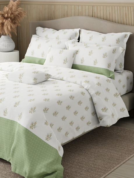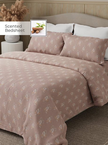 Royal Essence 100% Cotton 400 TC Peach Floral King Bedsheet with 4 Pillow Covers & 2 Cushion Covers