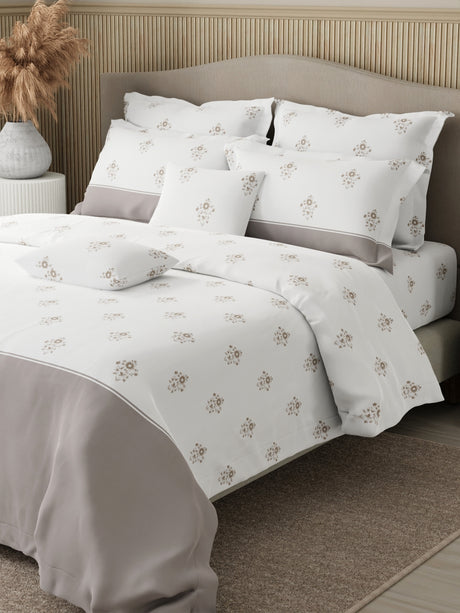 Royal Essence 100% Cotton 400 TC Grey Digital Floral Print King Bedsheet with 4 Pillow Covers