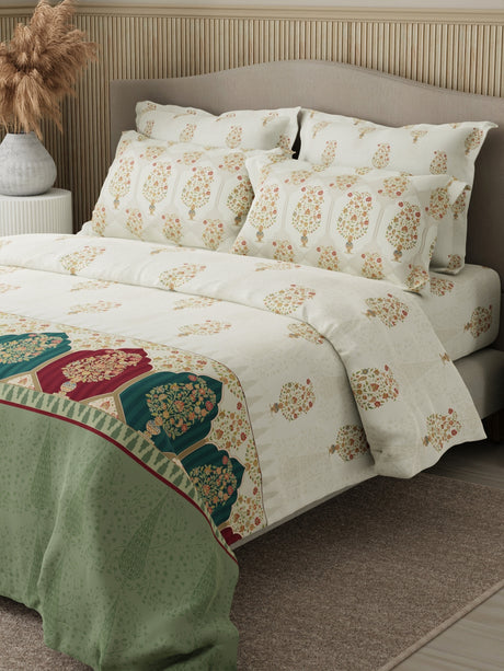 Royal Essence 100% Cotton 400 TC Multicolor Digital Ethnic Print King Bedsheet with 4 Pillow Covers