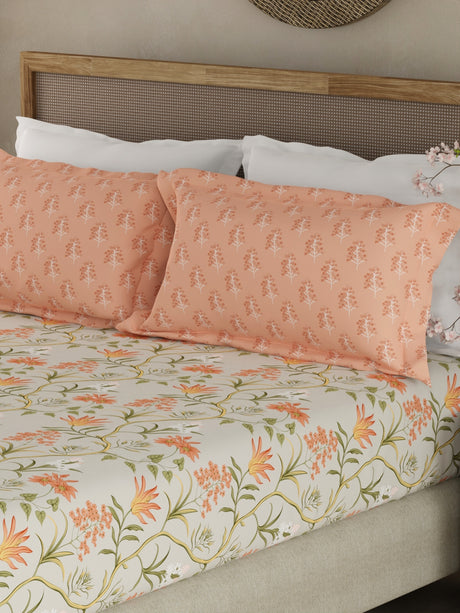 Rs. 2,155.00MRP inclusive of all taxesUnit price /UnavailableValatia 100% Cotton 200 TC Peach Floral King Fitted Bedsheet with 2 Pillow Covers