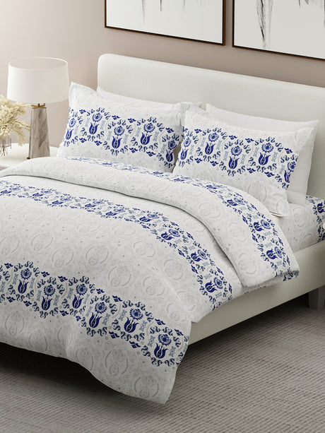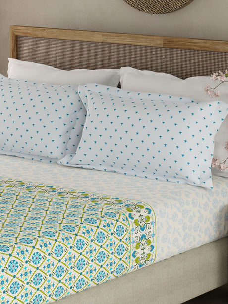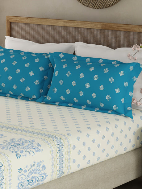 Rs. 2,155.00MRP inclusive of all taxesUnit price /UnavailableSiesta 100% Cotton 200 TC White & Blue Ethnic Print King Bedsheet with 2 Pillow Covers