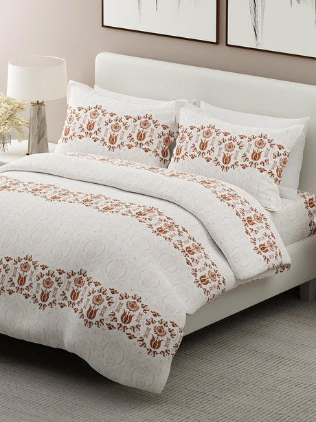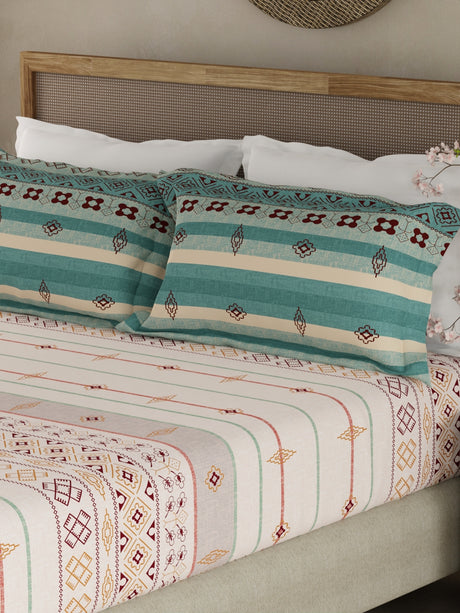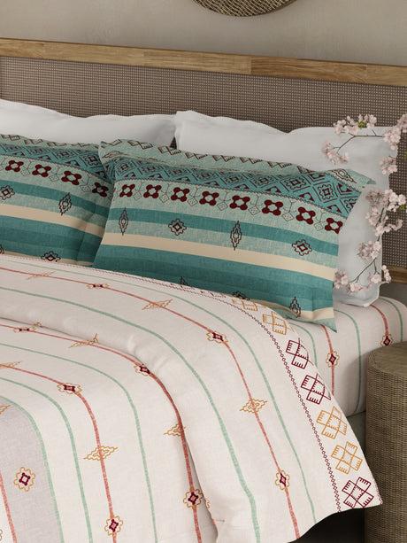 Valatia Gypsy 100% Cotton 200 TC Ethnic Printed King Bedsheet with 2 Pillow Covers - White
