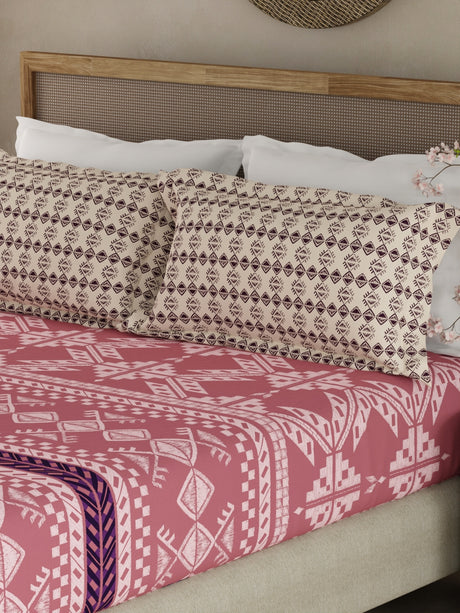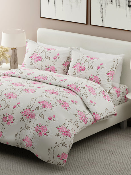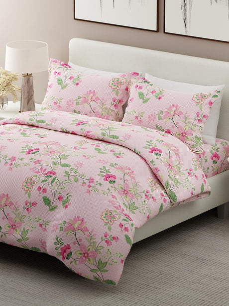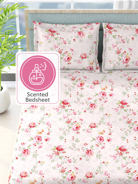Siesta 100% Cotton 200 TC Pink Floral Print King Bedsheet with 2 Pillow Covers