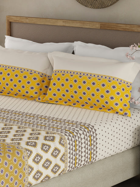 Rs. 2,155.00MRP inclusive of all taxesUnit price /UnavailableHeritage Walk 100% Egyptian Cotton 200 TC Yellow Ethnic Print King Bedsheet with 2 Pillow Covers