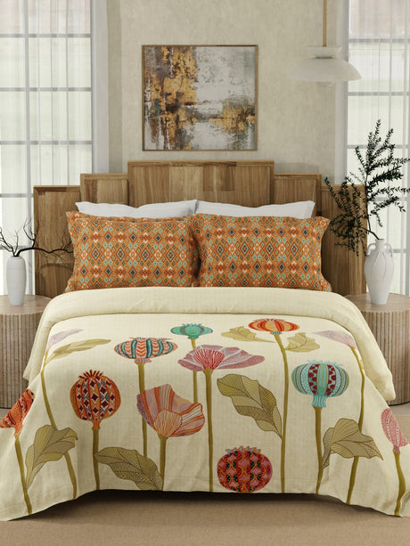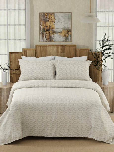 Gardenia Augusta 100% Cotton 300 TC Beige Digitally Printed Super King Bedsheet with 2 Pillow Covers
