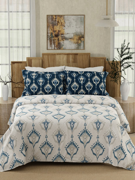 Valatia Gypsy 100% Cotton 200 TC Ethnic Printed King Bedsheet with 2 Pillow Covers - Blue