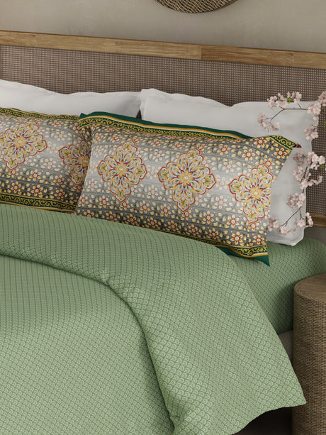 Rs. 2,155.00MRP inclusive of all taxesUnit price /UnavailableHeritage Walk 100% Egyptian Cotton 200 TC Green Ethnic Print King Bedsheet with 2 Pillow Covers