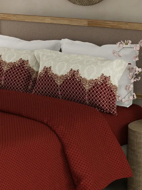 Rs. 2,999.00MRP inclusive of all taxesUnit price /UnavailableHeritage Walk 100% Egyptian Cotton 200 TC Red Ethnic Print King Bedsheet with 2 Pillow Covers