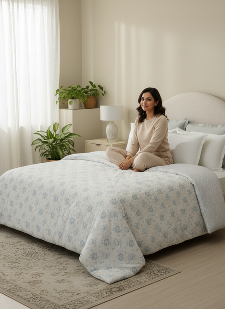 Double Size Blanket, Grey Floral (2.40 L x 2.20 W meters), Valatia Collection