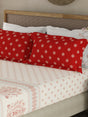 Valatia Gypsy 100% Cotton 200 TC Ethnic Print Fitted King Bedsheet with 2 Pillow Covers - White & Red