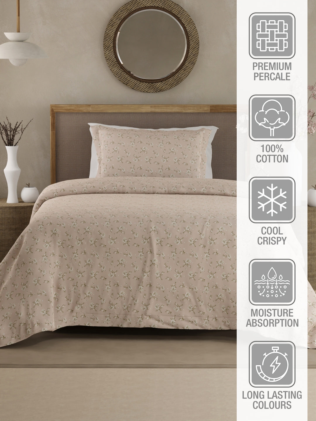 Transform your sleep with our 300 TC Cotton Bed Sheets, crafted from 100% premium cotton for unmatched softness and durability. The percale weave ensures a crisp yet smooth feel, offering breathability and comfort all night long. Designed to resist shrinking and fading, these sheets maintain their vibrant colors and quality wash after wash.