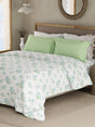Valatia 100% Cotton 200 TC White & Green Floral King Bedsheet with 2 Pillow Covers
